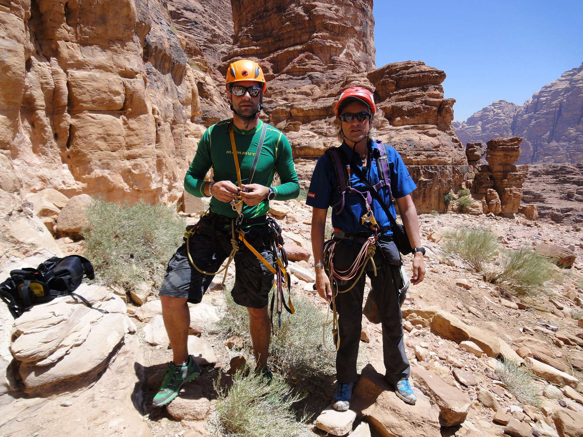 +Amigos, ¡qué cantidad que nos han pasado en estos pocos días! La última vez que os pude escribir acabábamos de salir del gran cañón que descendimos Kike, Pelut, Emilio y yo. Fue espectacular ¡pero qué calor que pasamos! Eso nos alertó de que las temperaturas jordanas, ahora que llegamos al verano, iban a ser un elemento crucial en nuestro desafío: escalar los 450 metros de la vía “Inshallah...