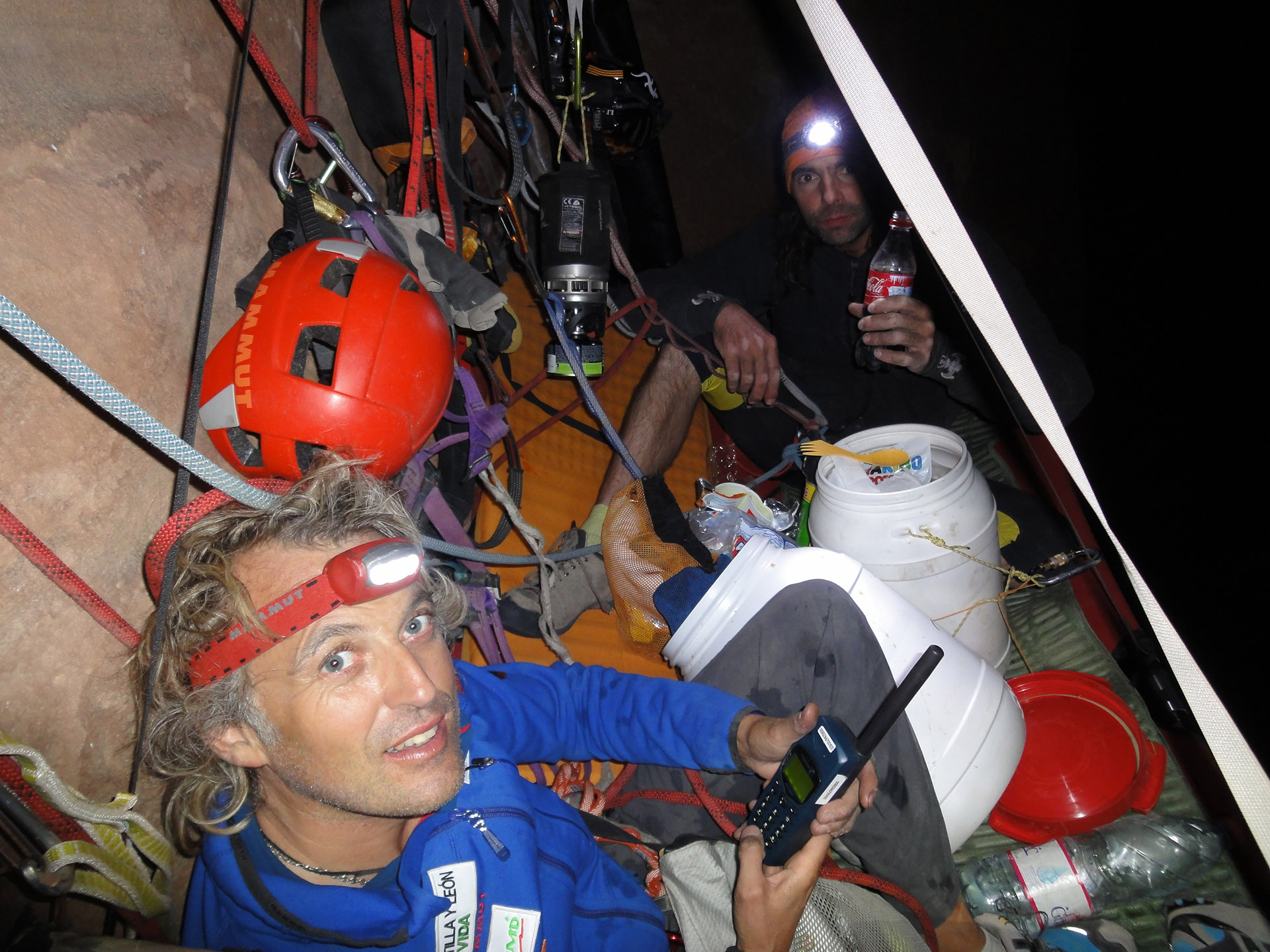 +Así han pasado la noche el equipo de Desafío Extremo. A 300 metros del suelo, en una hamaca de big wall anclada a la pared y con el cielo por techo. Jesús, Emilio y Pelut lograron completar ayer los primeros largos de la Inshallah Factor y, tras ¡16 horas! de trabajo en pared –comenzaban a las 7 de la mañana- alcanzaban el lugar en el que instalarían las hamacas. Así nos lo contaba Jesús ayer, a través del...