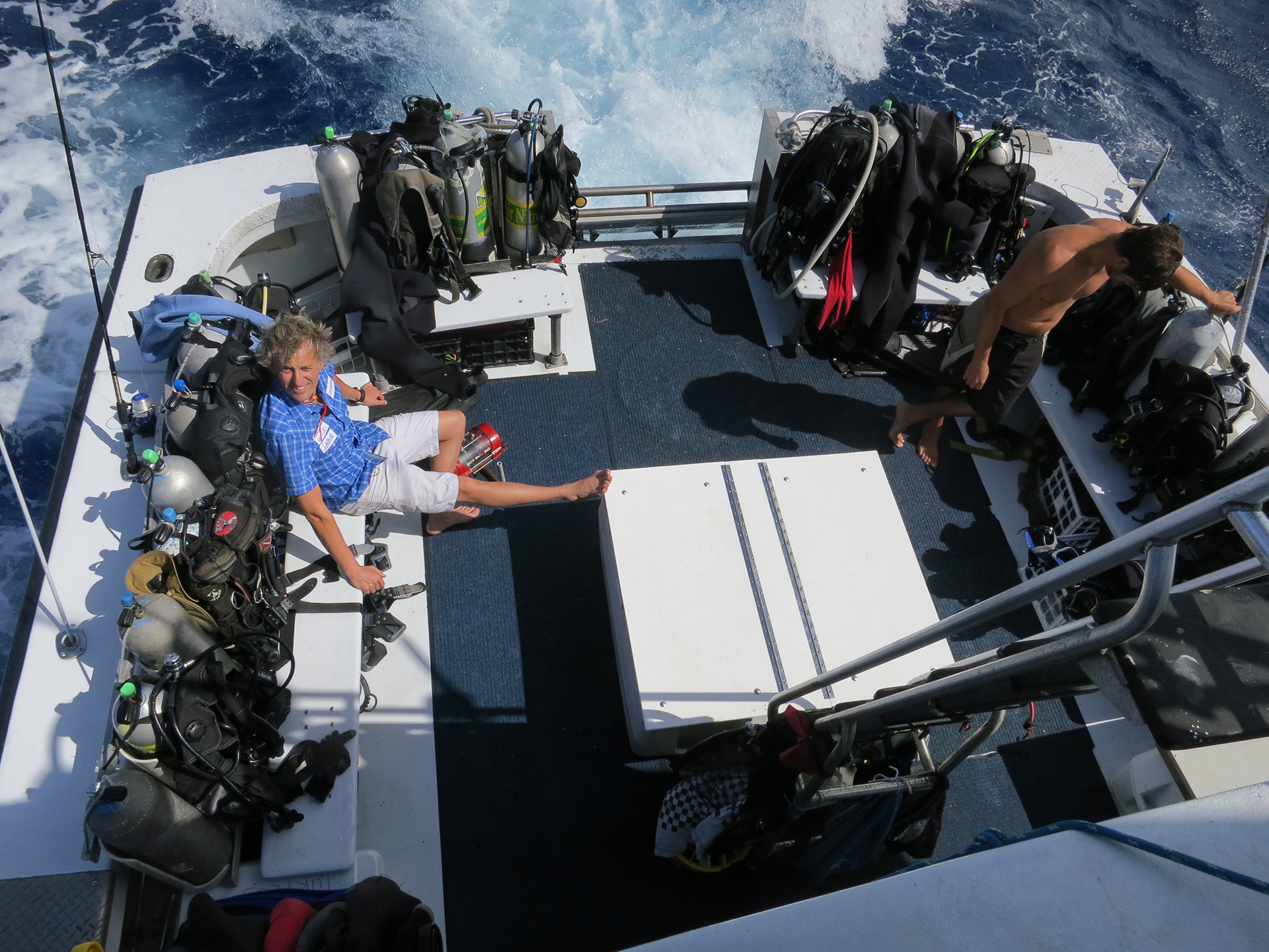 Junto al equipo de Jim Abernethy, hemos podido bucear con tiburones oceánicos de puntas blancas, el tiburón que más muertes ha causado en la historia, y os aseguro que no lo hemos hecho en las mejores condiciones posibles… en absoluto. Como os contaba en la anterior crónica cuando veníamos de bucear en aguas poco profundas, veíamos en los mapas que se acercaban tormentas, de nuevo. Y efectivamente el tiempo empeoró amigos, y los frentes...